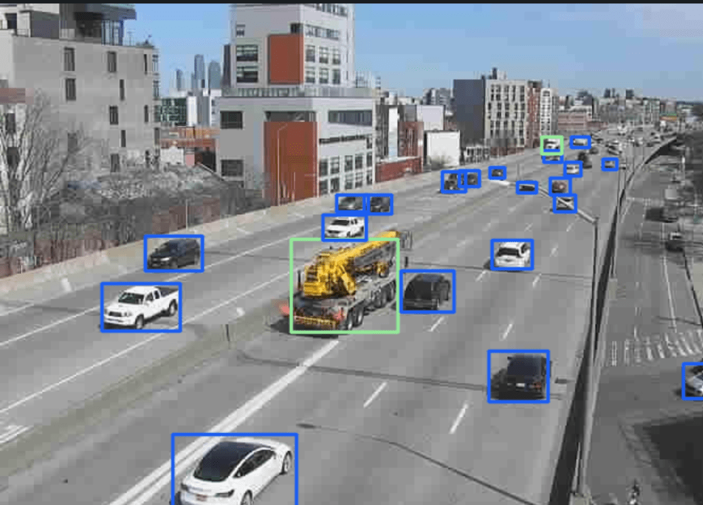 Given the amount of traffic cameras we had, it made sense to detect numbers of cars as well. If people are going out less, there should be fewer vehicles on the road. We made the same mistake of trying to apply recent “traffic estimation” methods to our data. Turns out, good old YOLO trained on MS COCO works incredibly well, even on very, very grainy vehicles in our data. We used the “car”, “truck”, “motorcycle”, and “bus” categories to define vehicles.