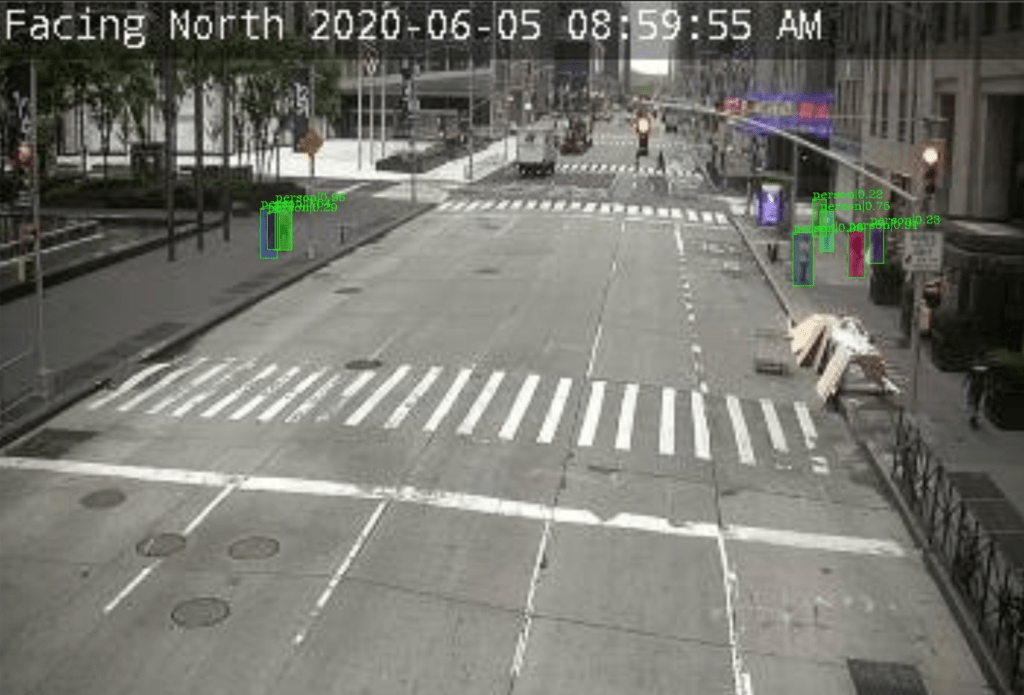 In the beginning, it wasn’t that obvious that simply running basic object detection to detect pedestrians on our camera footage was the best way forward. We didn’t really have any idea what kind of crowd sizes we’d see in the data, given that it was mid-March and social distancing hadn’t really fully set in yet. Google searches on “crowd counting”, returned recent, sophisticated AI methodologies far beyond basic object detection, that claimed to work better and faster – like density methods, context-aware models, and more scary-sounding things that I hadn’t heard of before that point. We came across this list of recent crowd counting methods early in the research phase and systematically narrowed them down based on benchmark results on famous datasets and availability of open-source code. After trying a few of them out on our data, we realized two things: 1) most of these fancy methods worked well only on images of super dense crowds, and 2) none of our images ended up having such large crowds! Judging from those preliminary results, it was good to see that social distancing had in fact begun to set in in a few key tourist areas like Times Square, and also that it might be possible to detect and report social distancing solely from our camera footage.